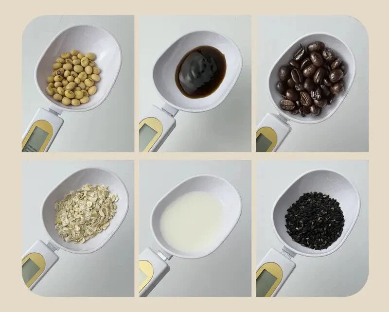 Multifunctioneel: vervangt een hele set maatlepels en kan zowel vaste stoffen als vloeistoffen wegen.
